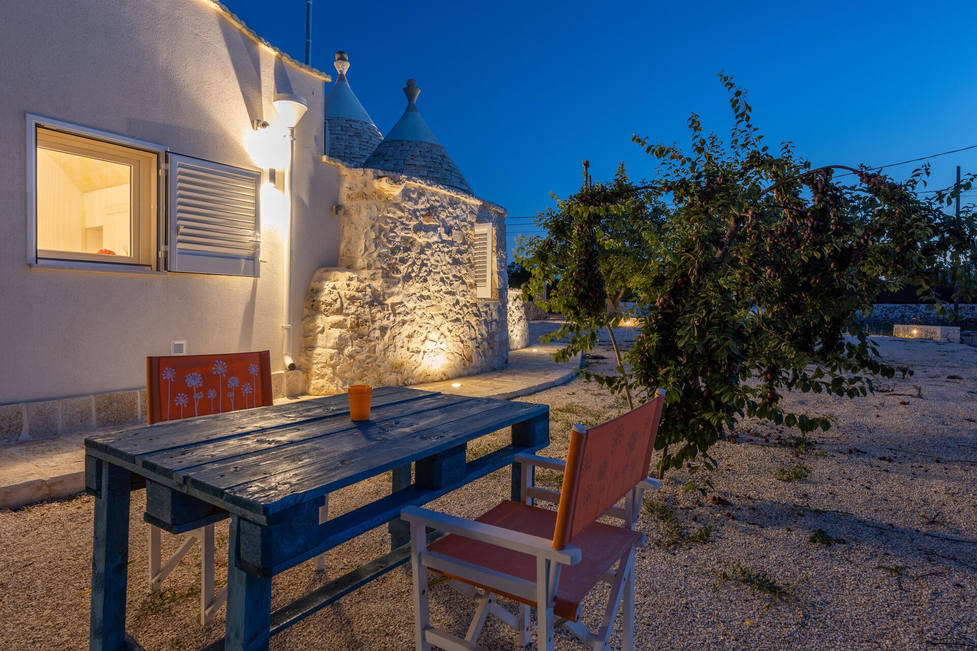 Entouré d’un grand jardin clôturé, le trullo dispose de 2 chambres et d’un canapé-lit dans le salon (sur demande et moyennant un supplément), pouvant accueillir de 4 à 6 personnes. Bien que la structure ait été rénovée, l’utilisation de matériaux typiques de la région (tuf et bois) est flagrante.