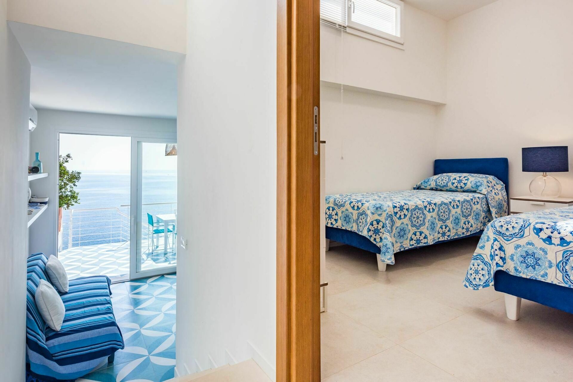 Finemente arredata con gusto e semplicità, la villa è dotata di ogni comfort. Con 2 camere da letto e varie aree comuni, si possono accogliere fino a 5 ospiti in ambienti accoglienti e luminosi. Le ampie vetrate del soggiorno si affacciano direttamente sul mare, offrendo una meravigliosa vista panoramica.