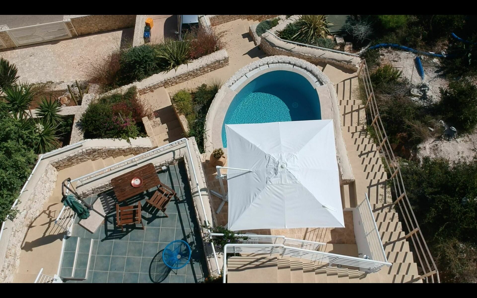 All'esterno, numerose terrazze circondano la casa e ospitano un'area attrezzata per poter comodamente mangiare all'aperto, così come una piscina con bordo a sfioro riservata agli ospiti e dotata di lettini e ombrellone: un luogo ideale come alternativa alla vicina spiaggia per rilassarsi con amici e familiari durante le calde giornate estive.