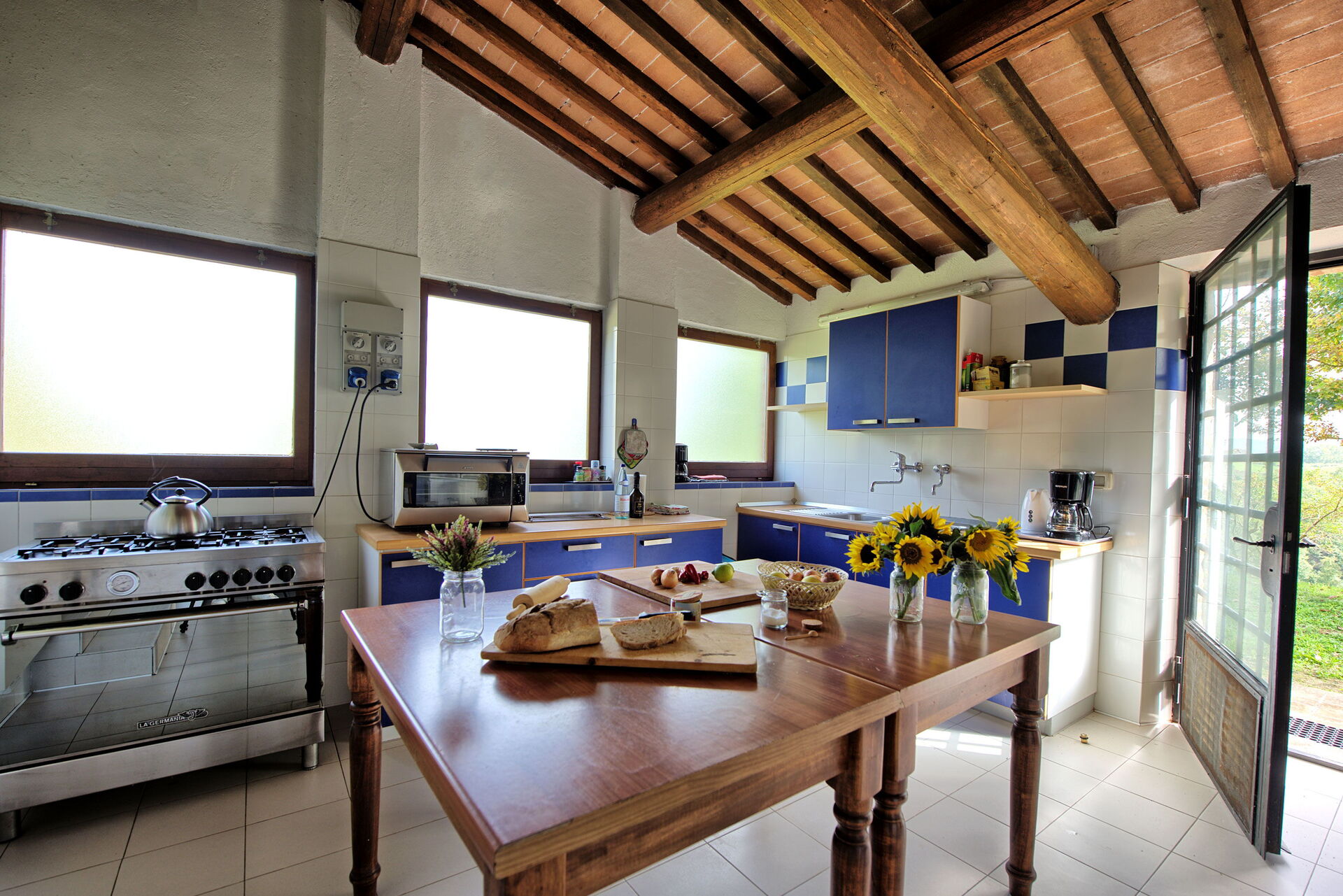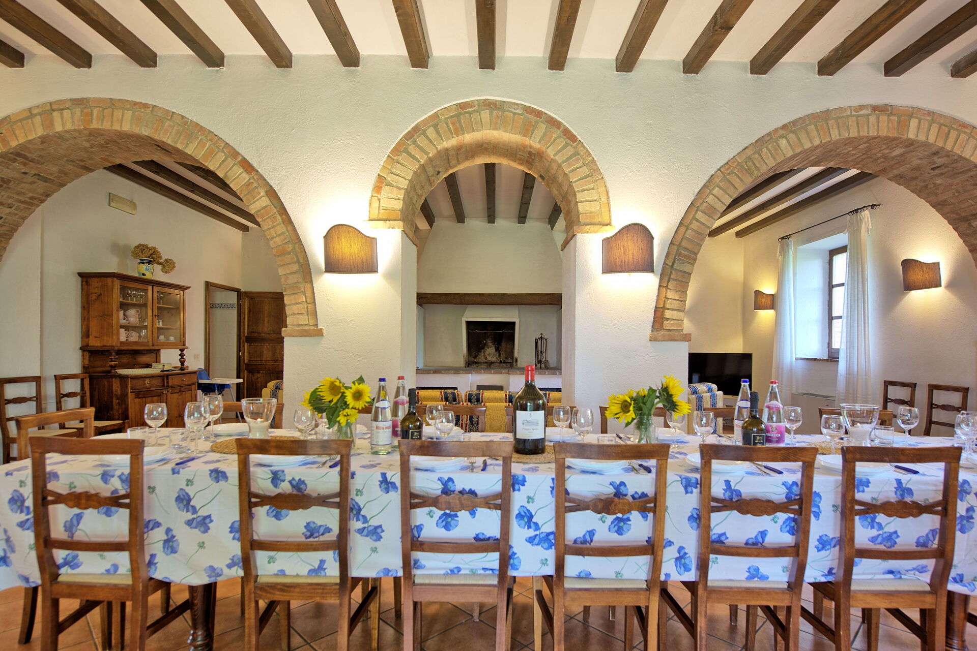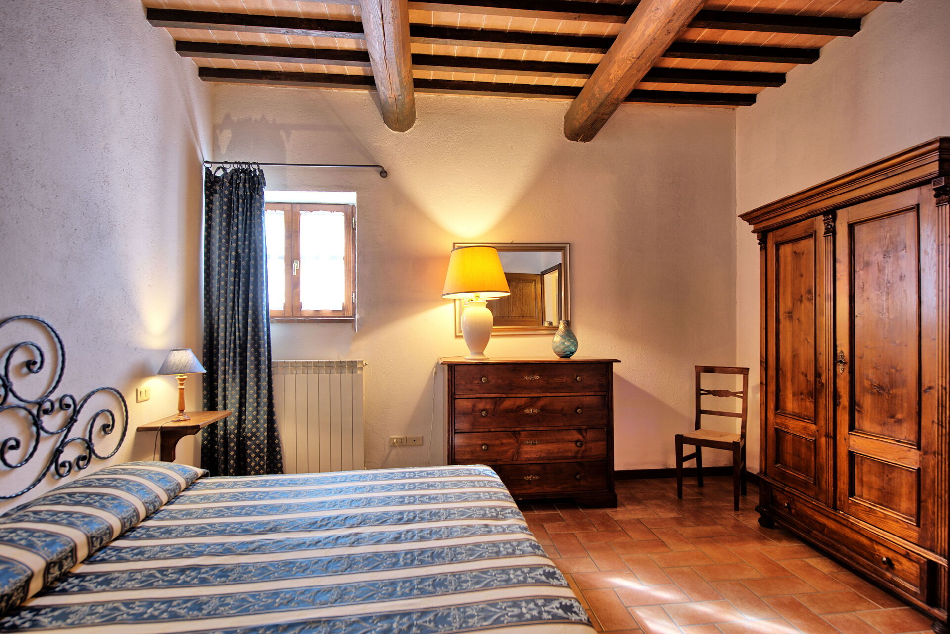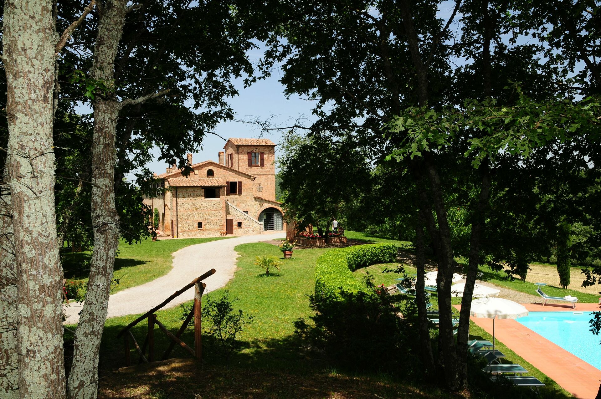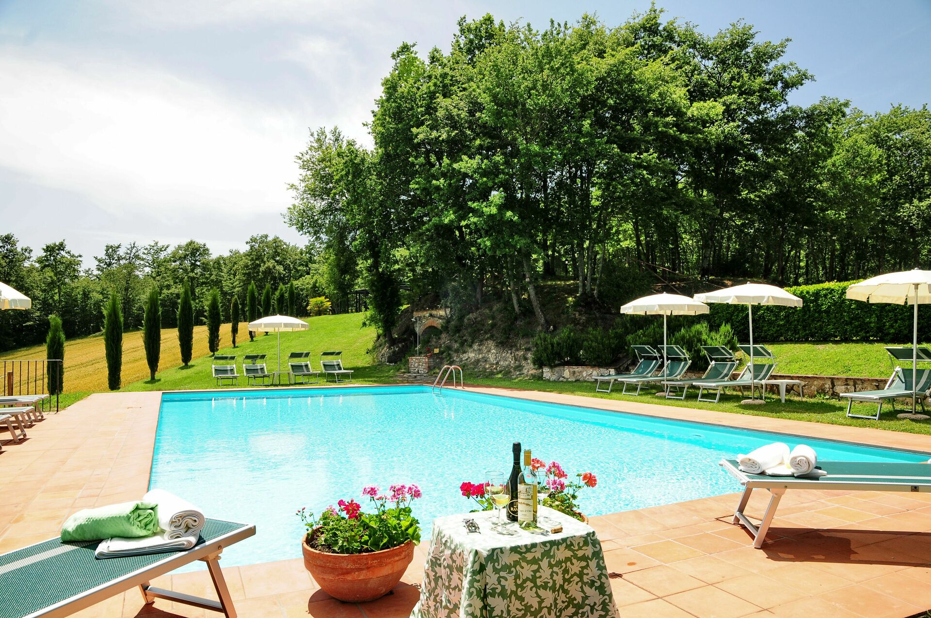 The location is very calm and secluded: expansive farm fields and woods surround the house, and a fantastic pool awaits you for cooling off on hot summer days. A short distance away you’ll find the spectacular Val d’Orcia (Pienza, Bagno Vignoni, Montalcino) and numerous art cities like Siena, Arezzo, Florence, Montepulciano, Orvieto, Todi, Perugia, and Arezzo.
