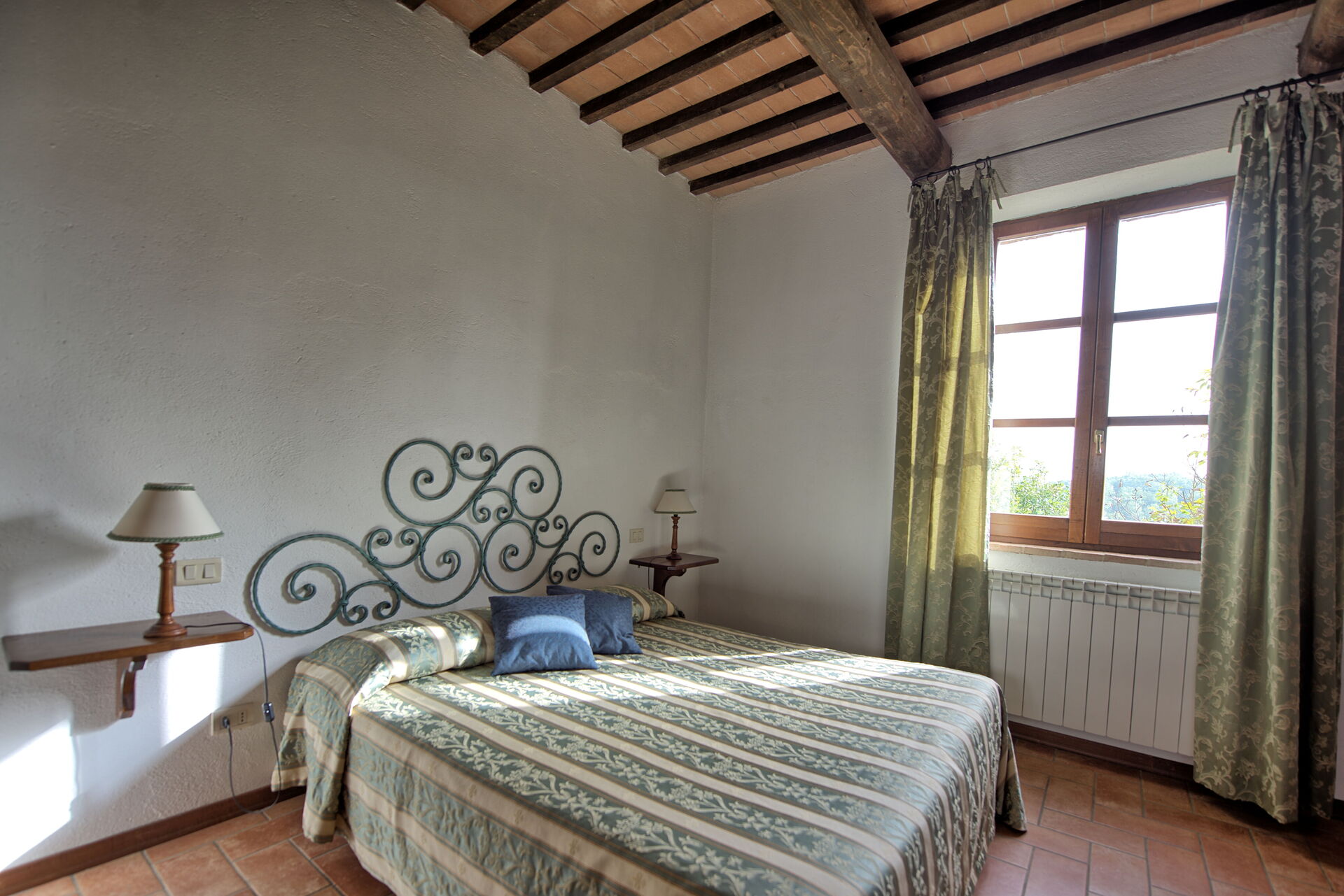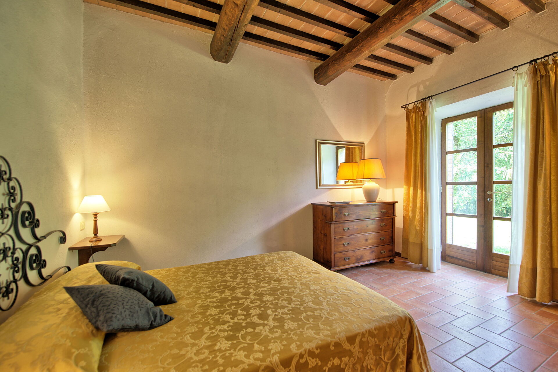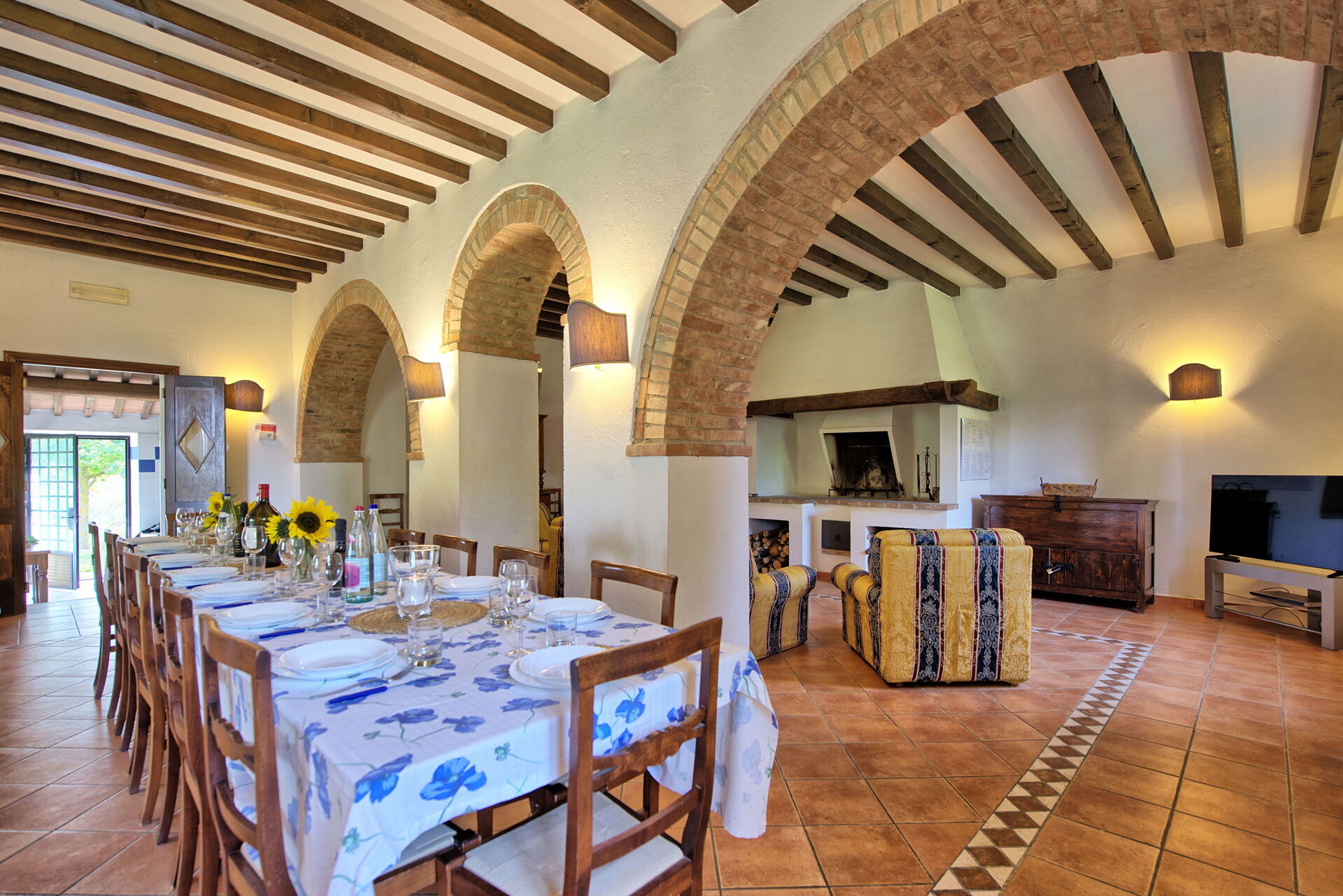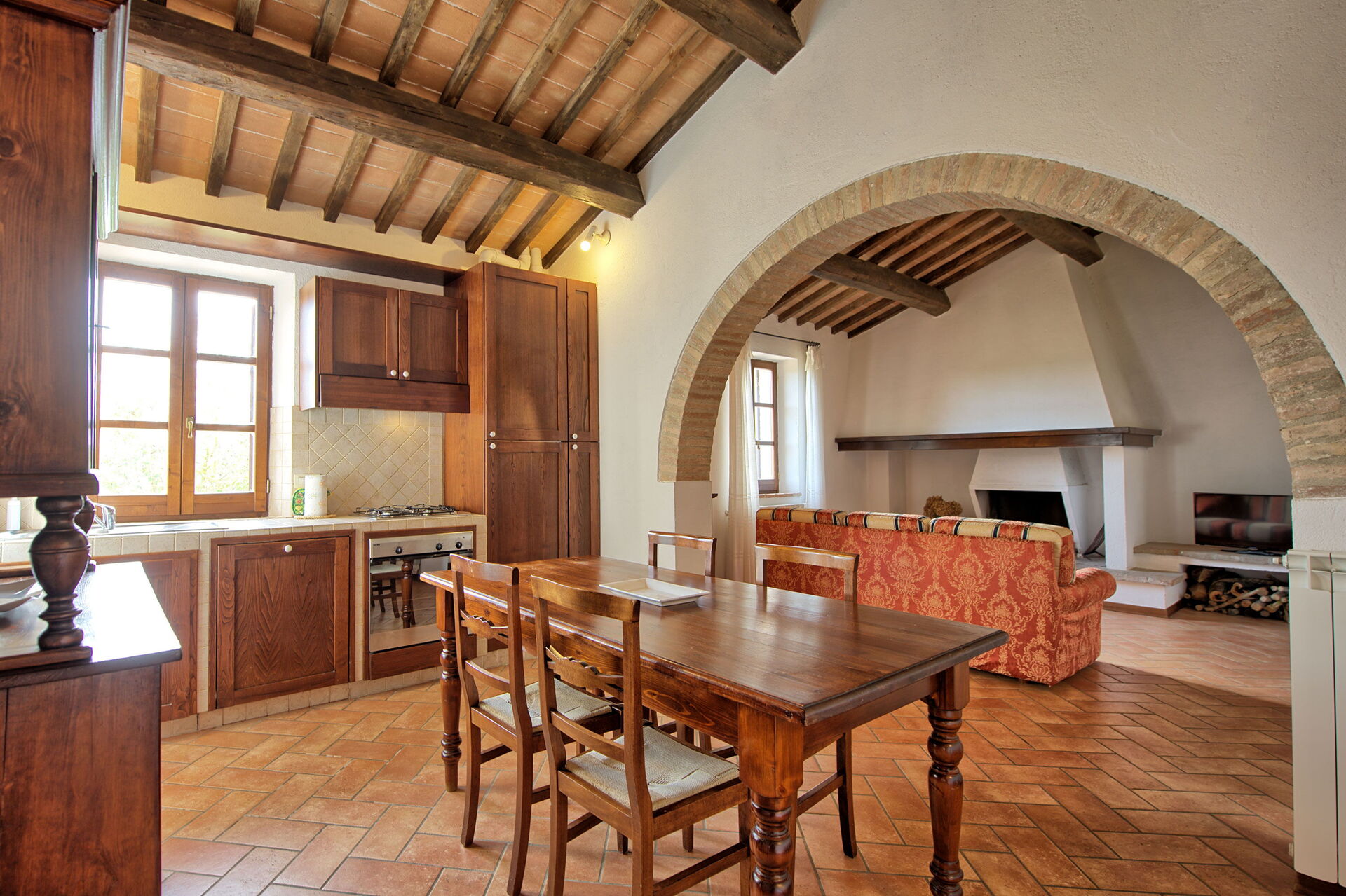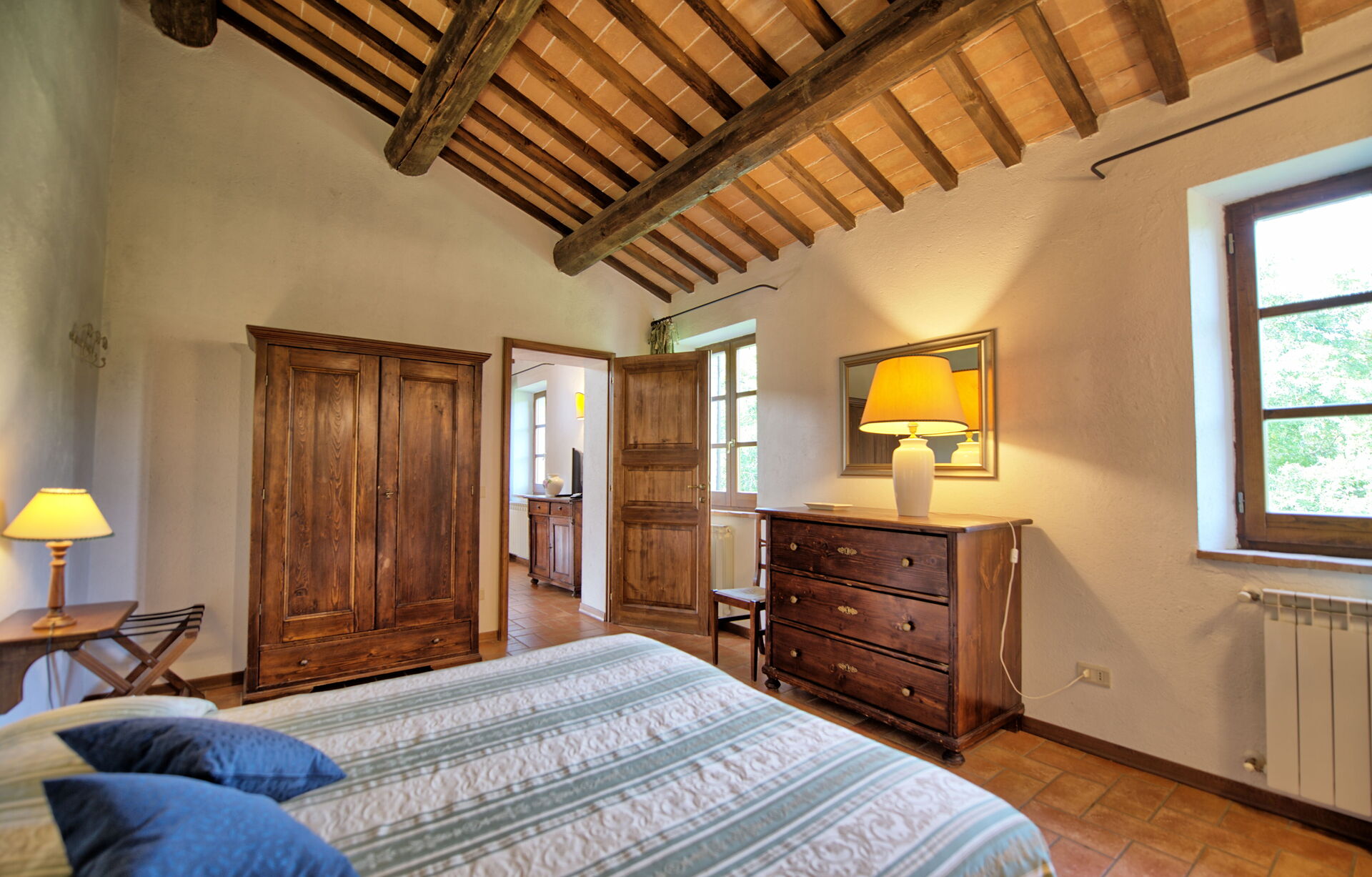The location is very calm and secluded: expansive farm fields and woods surround the house, and a fantastic pool awaits you for cooling off on hot summer days. A short distance away you’ll find the spectacular Val d’Orcia (Pienza, Bagno Vignoni, Montalcino) and numerous art cities like Siena, Arezzo, Florence, Montepulciano, Orvieto, Todi, Perugia, and Arezzo.