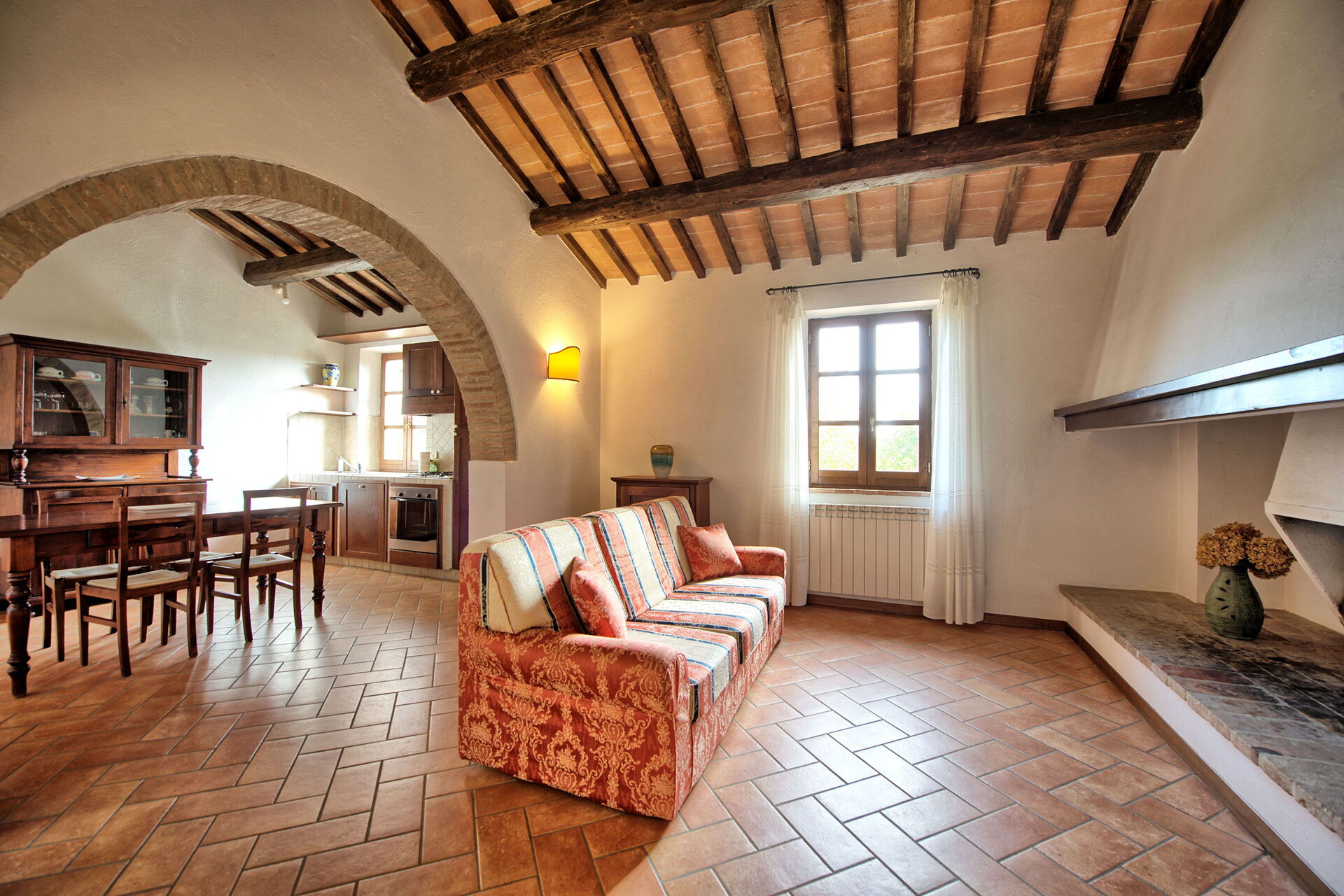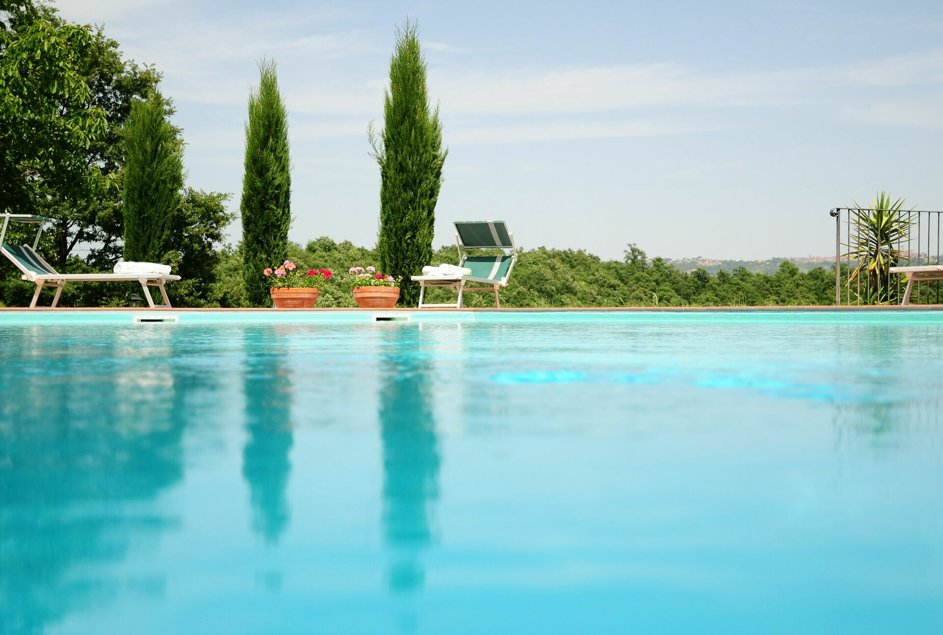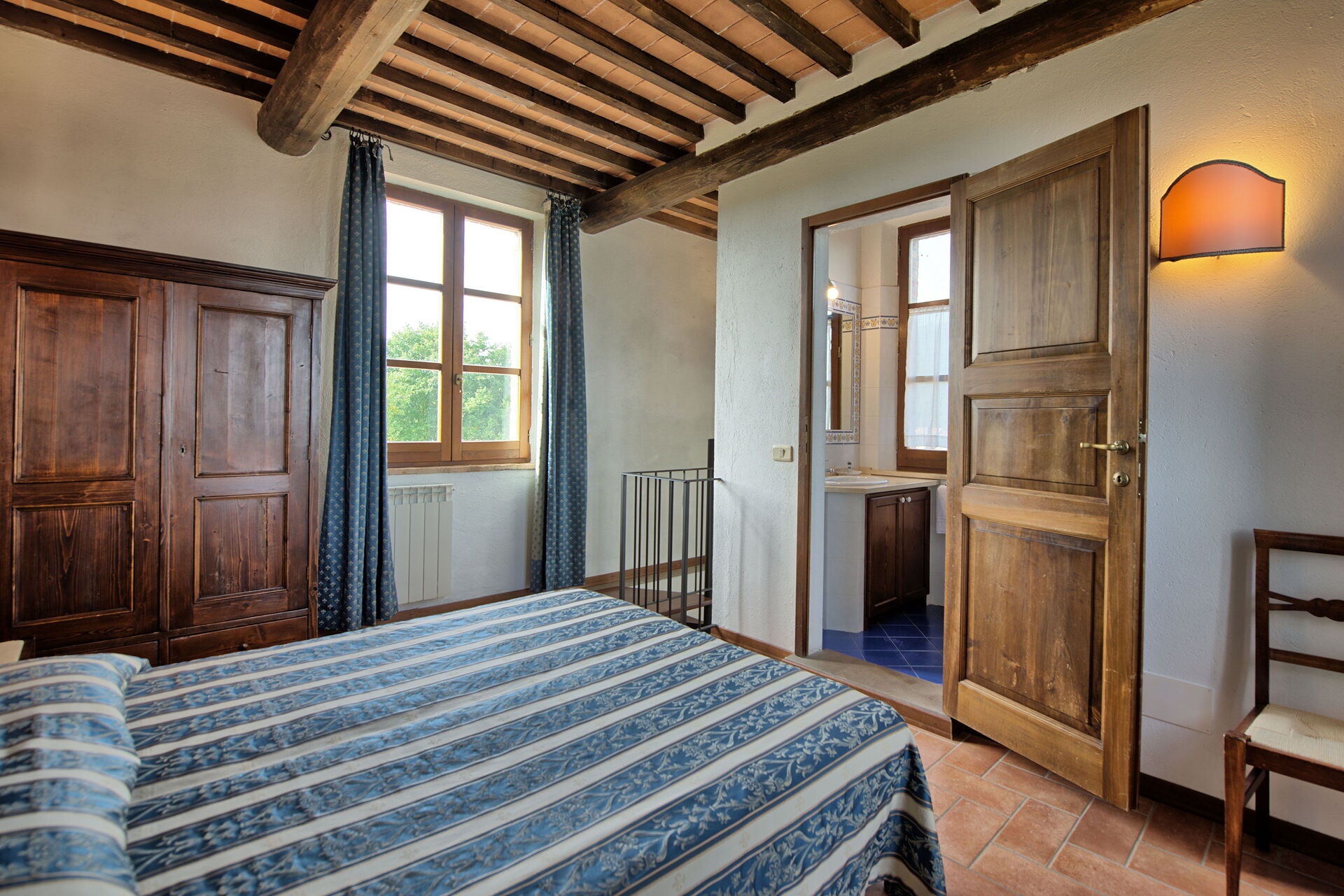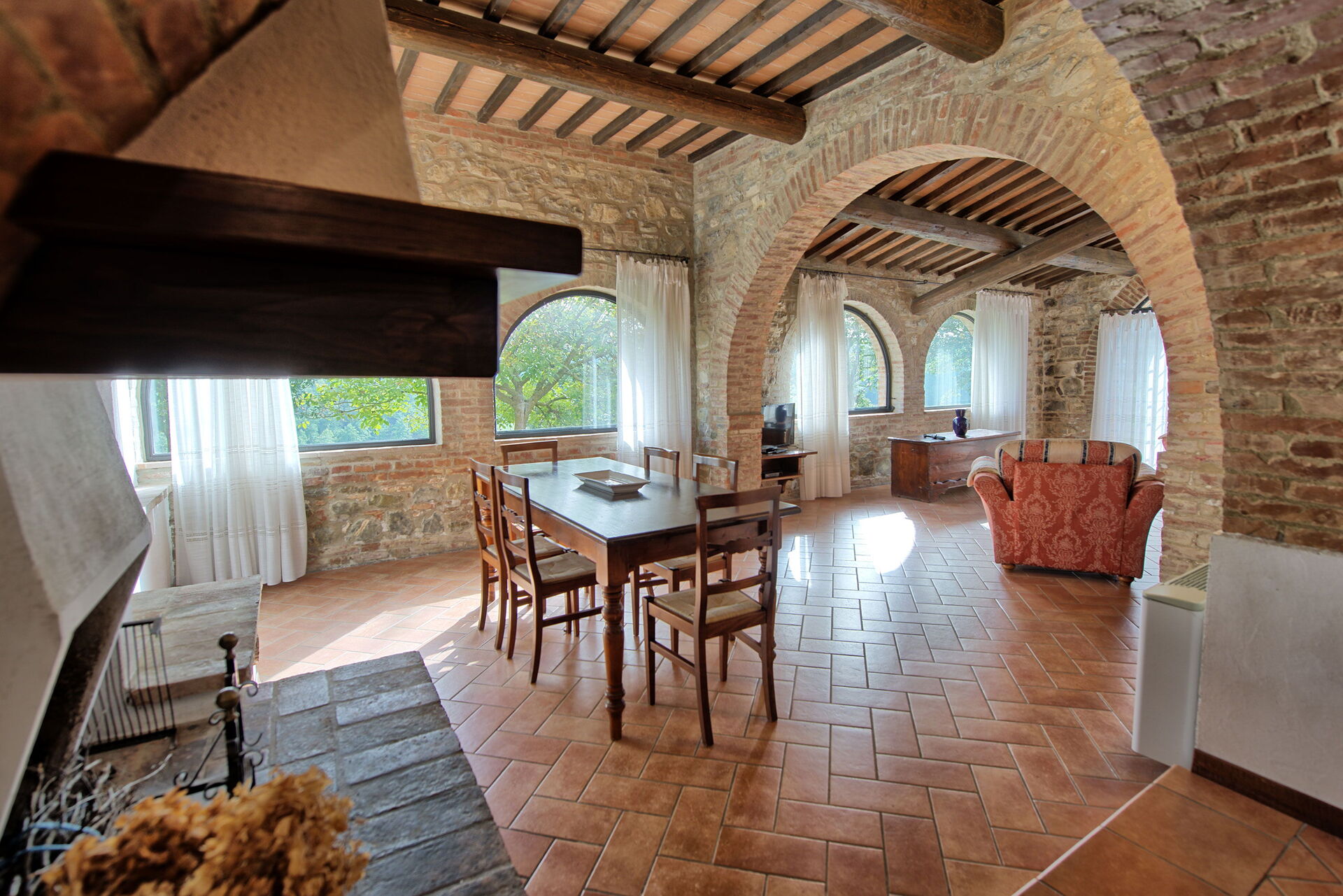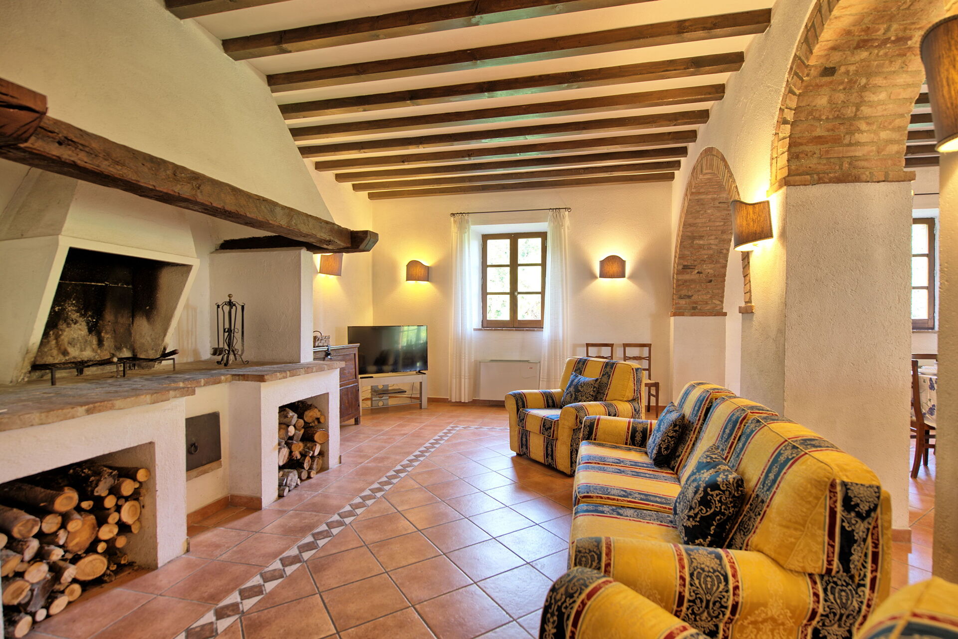 The location is very calm and secluded: expansive farm fields and woods surround the house, and a fantastic pool awaits you for cooling off on hot summer days. A short distance away you’ll find the spectacular Val d’Orcia (Pienza, Bagno Vignoni, Montalcino) and numerous art cities like Siena, Arezzo, Florence, Montepulciano, Orvieto, Todi, Perugia, and Arezzo.
