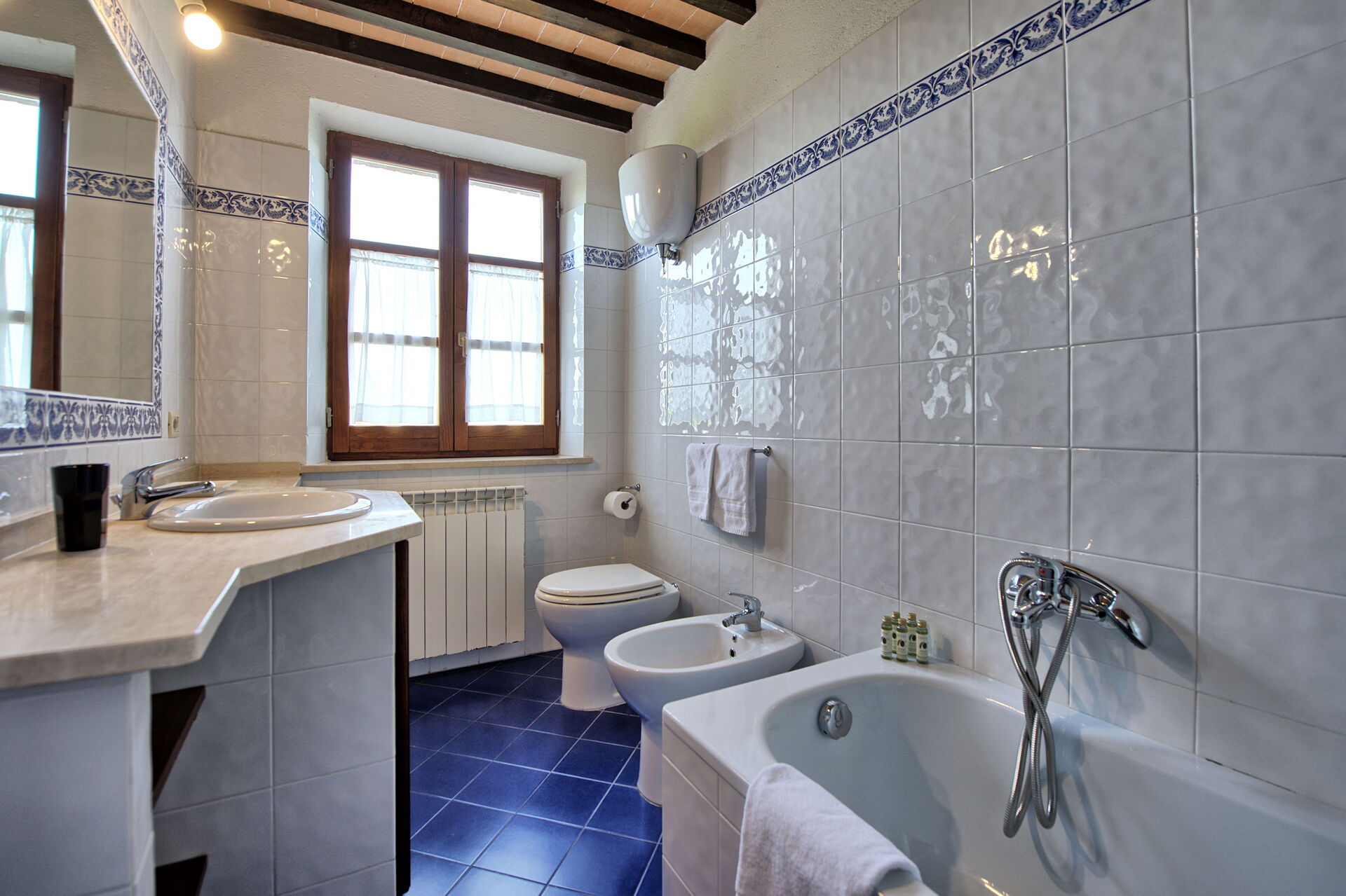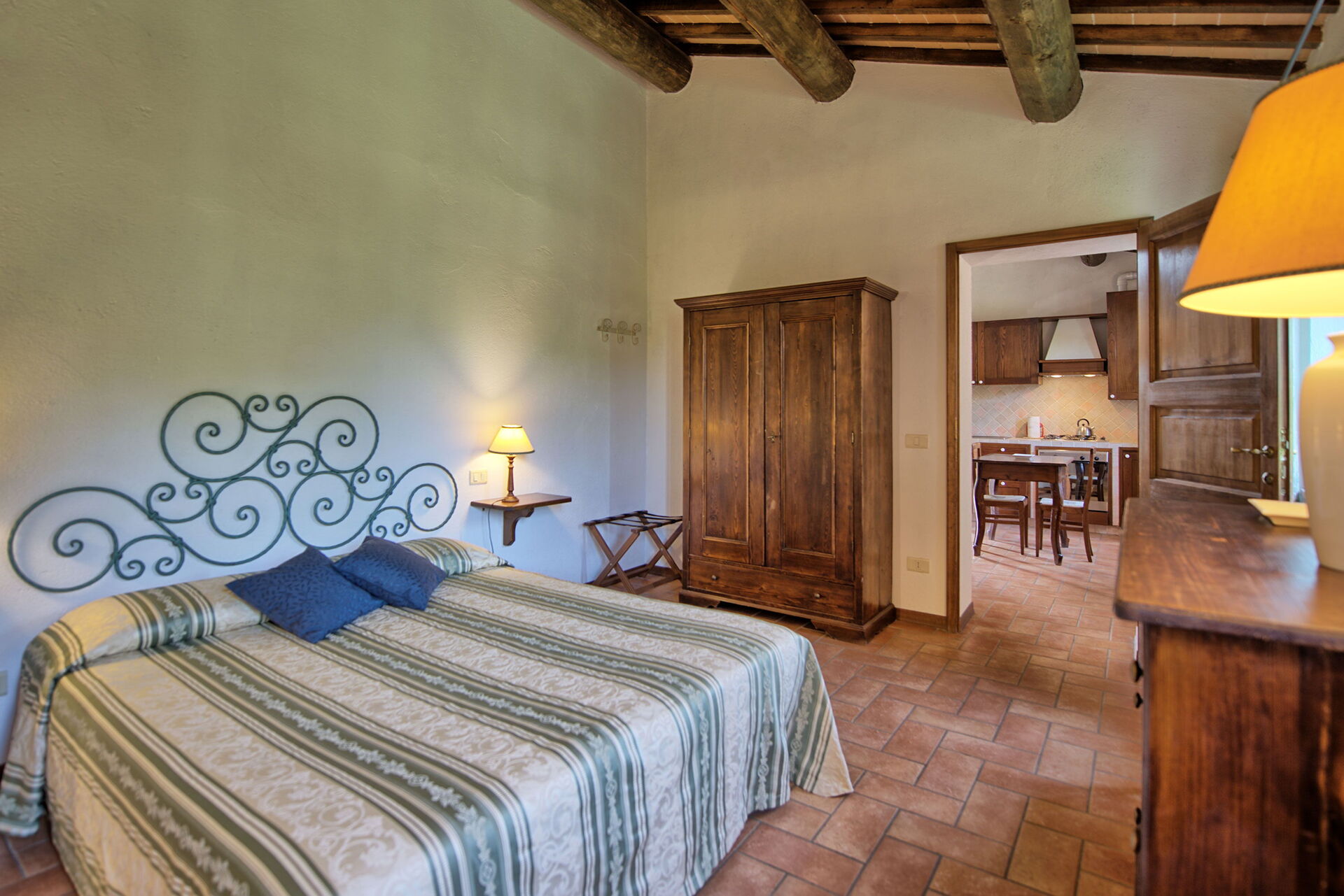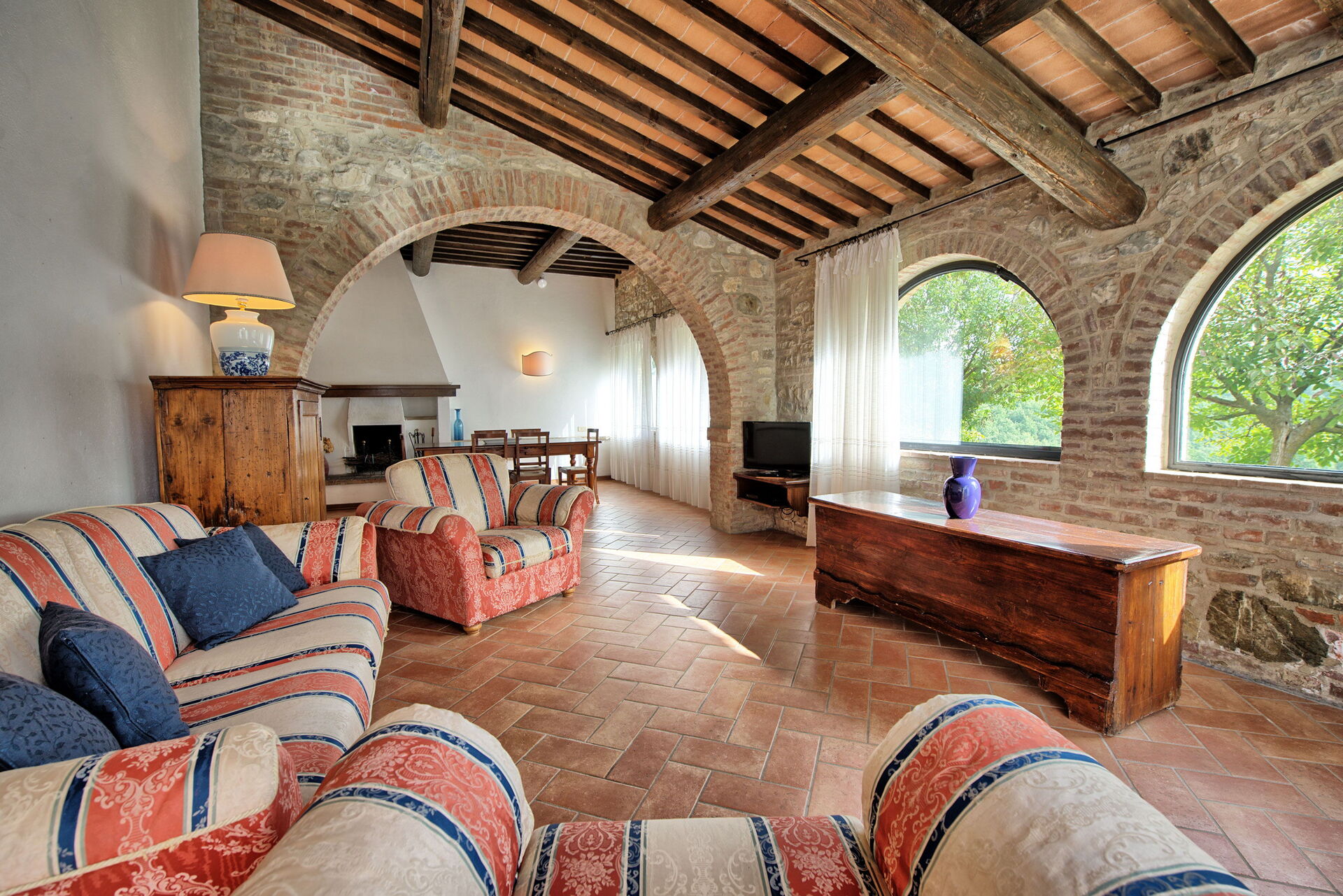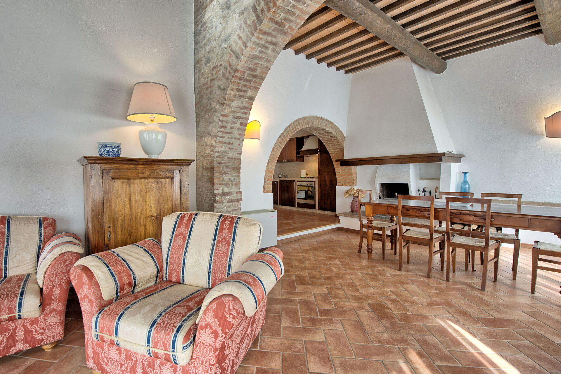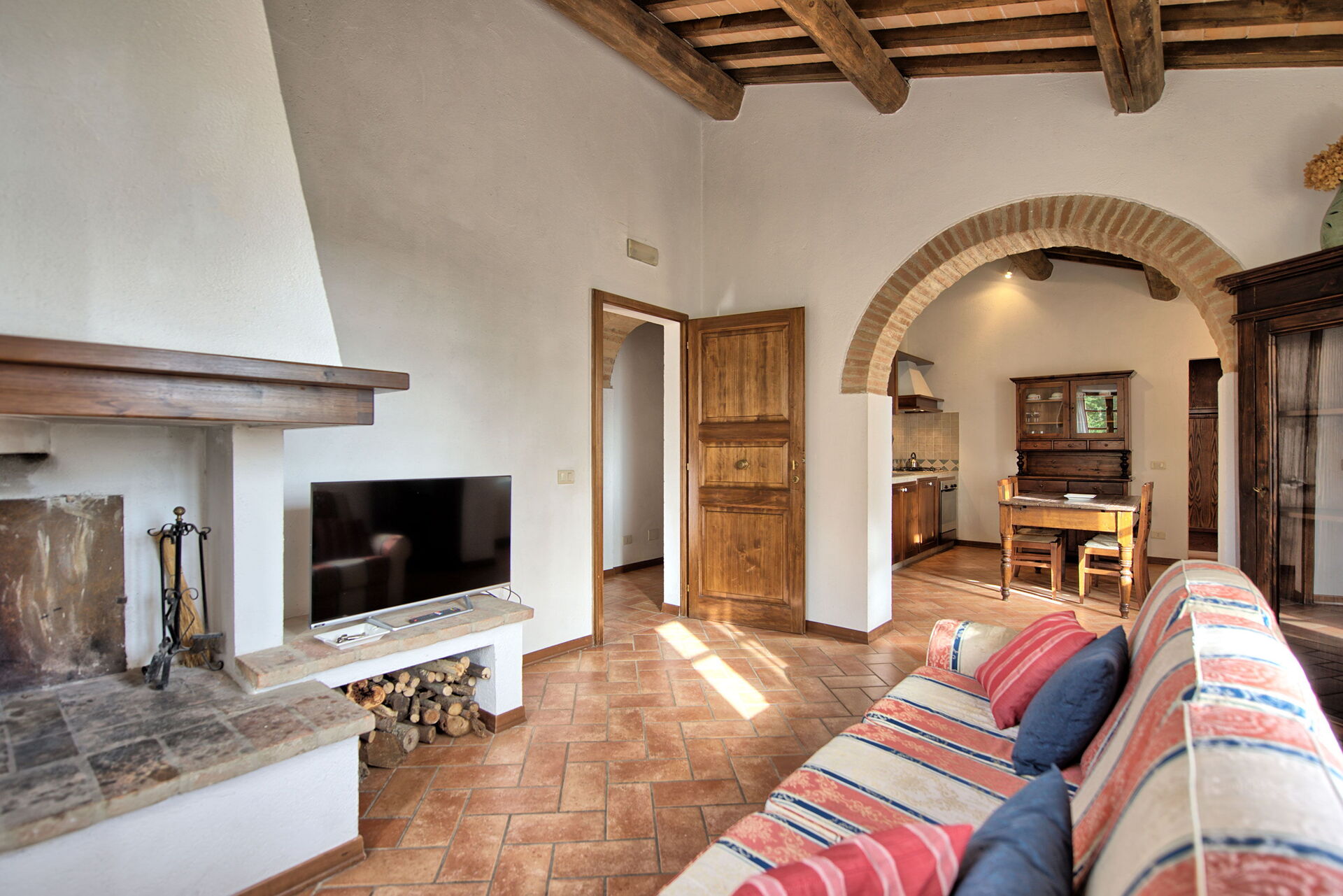 The location is very calm and secluded: expansive farm fields and woods surround the house, and a fantastic pool awaits you for cooling off on hot summer days. A short distance away you’ll find the spectacular Val d’Orcia (Pienza, Bagno Vignoni, Montalcino) and numerous art cities like Siena, Arezzo, Florence, Montepulciano, Orvieto, Todi, Perugia, and Arezzo.