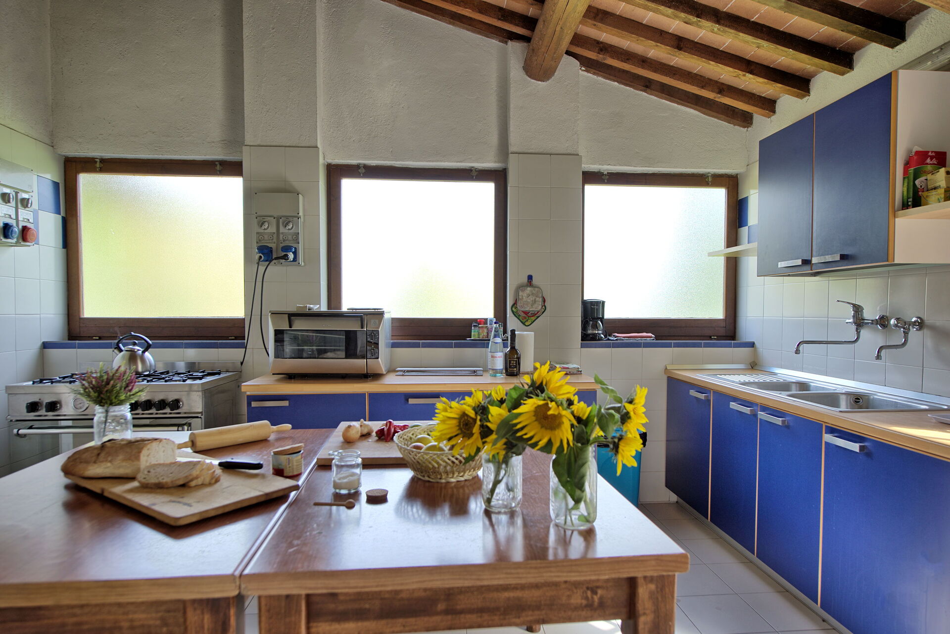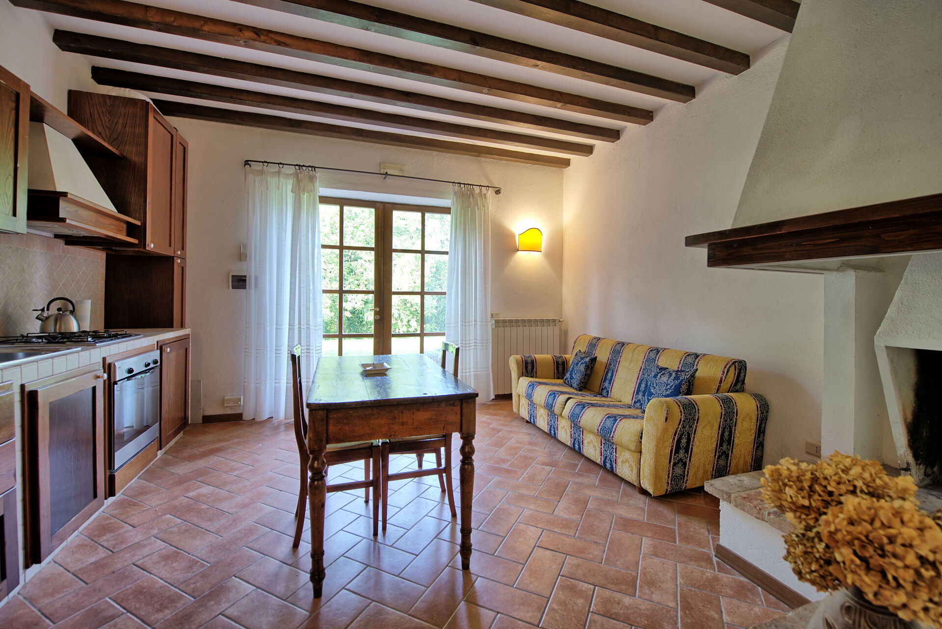 Ground floor (with independent entrance from the outside): over 80 m2 large room (with fireplace) that can be used for dinner, lunch and breakfast; from this room there is access to a well equipped semi-professional kitchen; there are also 2 small bathrooms.