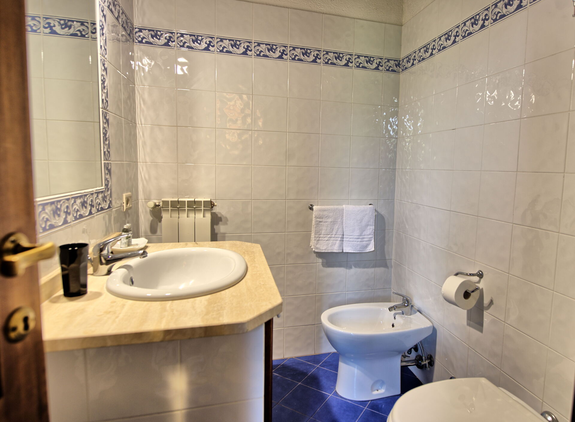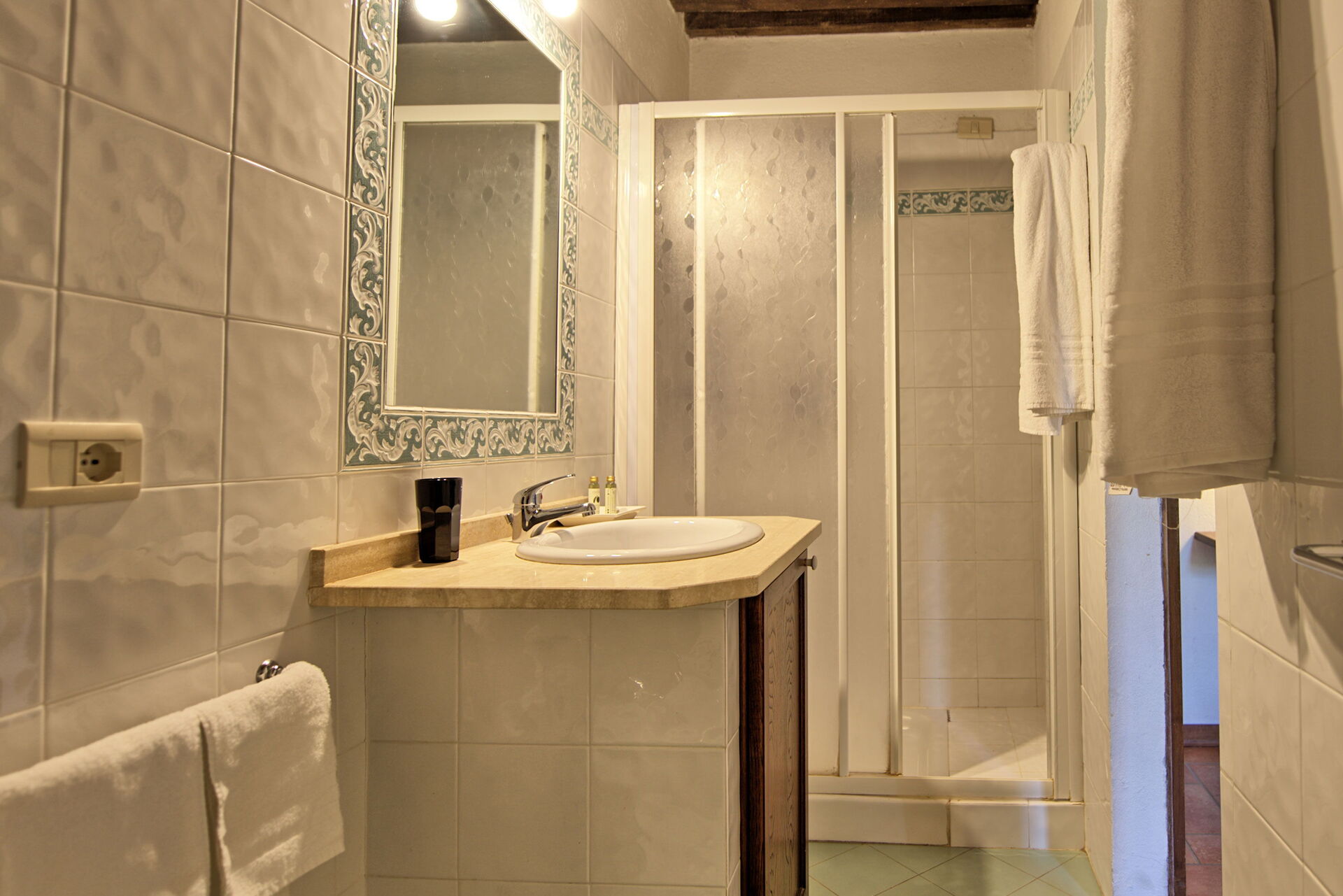 Second floor (in the tower with panoramic views): double bedroom with private bathroom with shower.