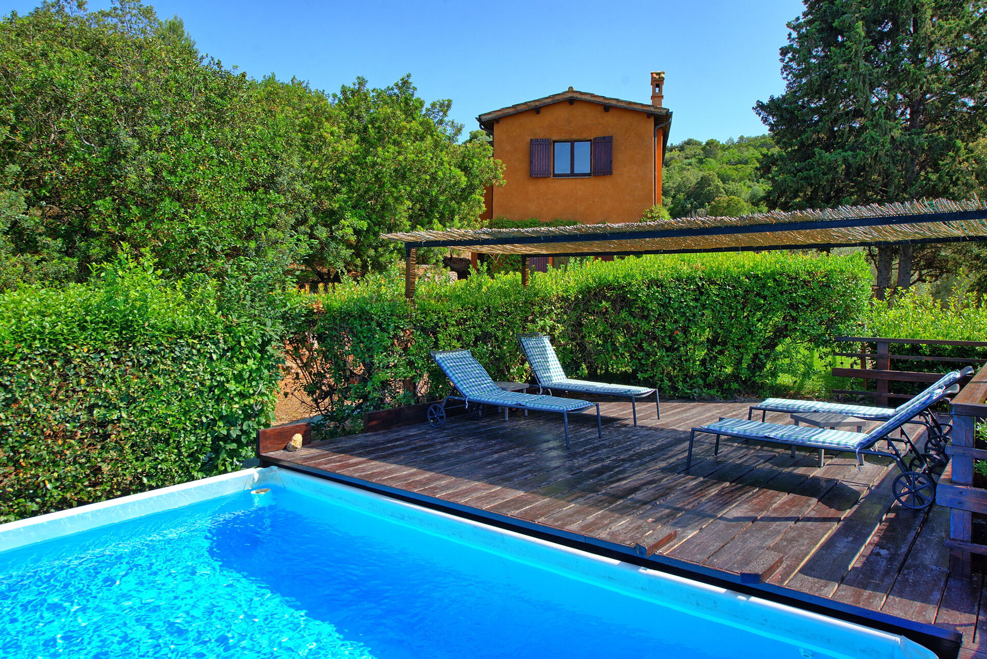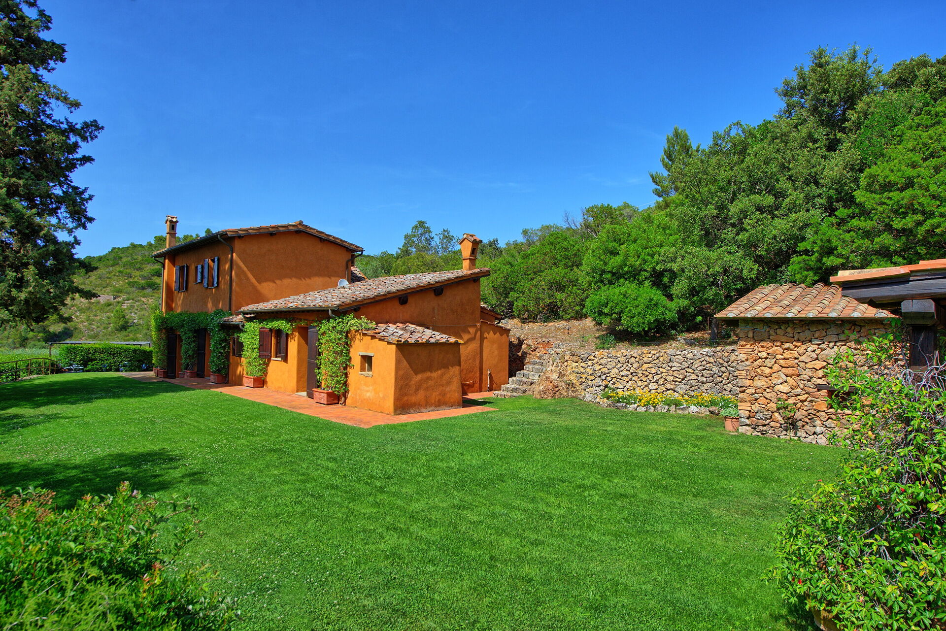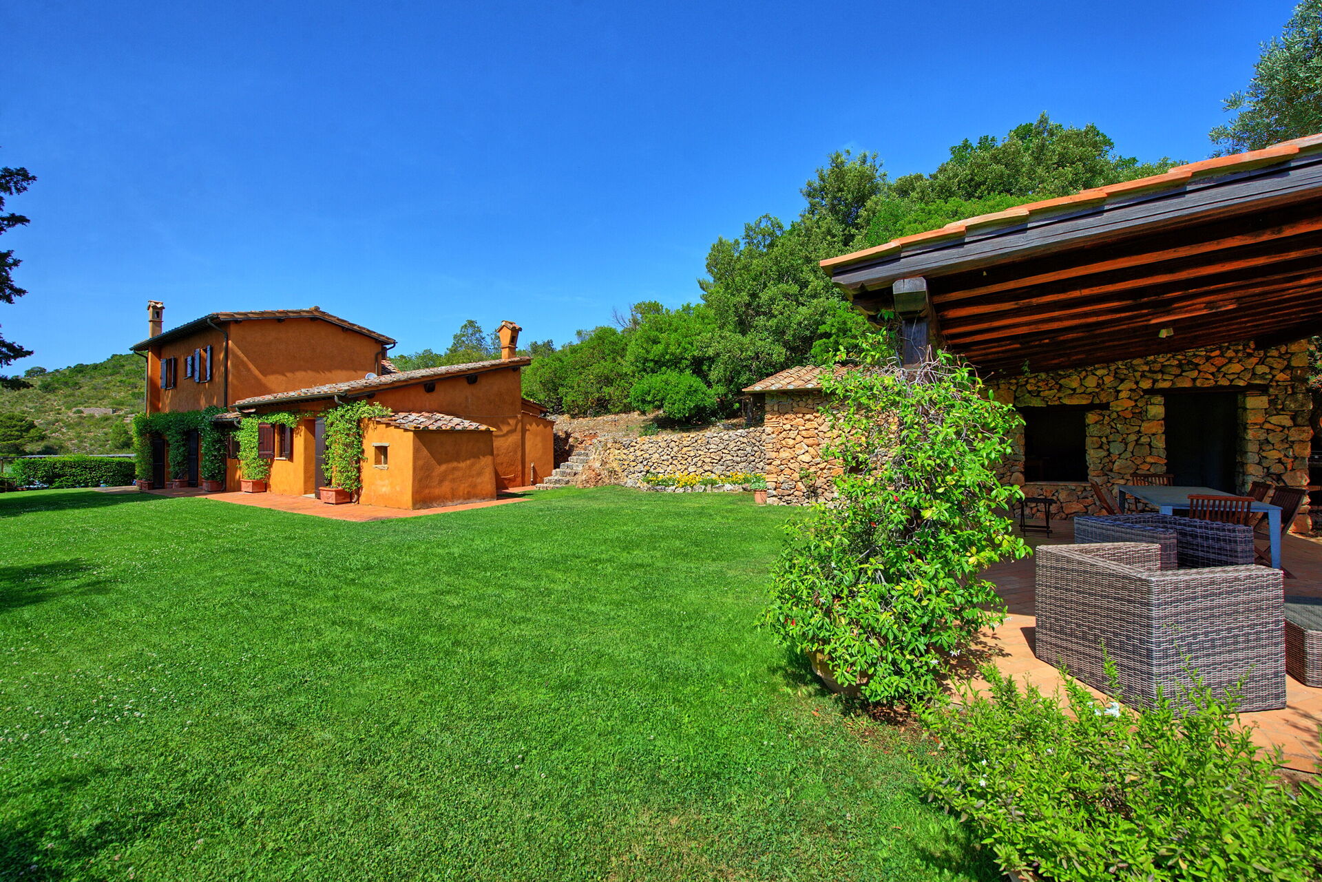 Country house with garden and private pool 1 km from Porto Santo Stefano. The sea is 1 km away from the villa. The area is famous for its gorgeous seaside, and the Maremma territory’s Mediterranean scrub vegetation and charming towns.