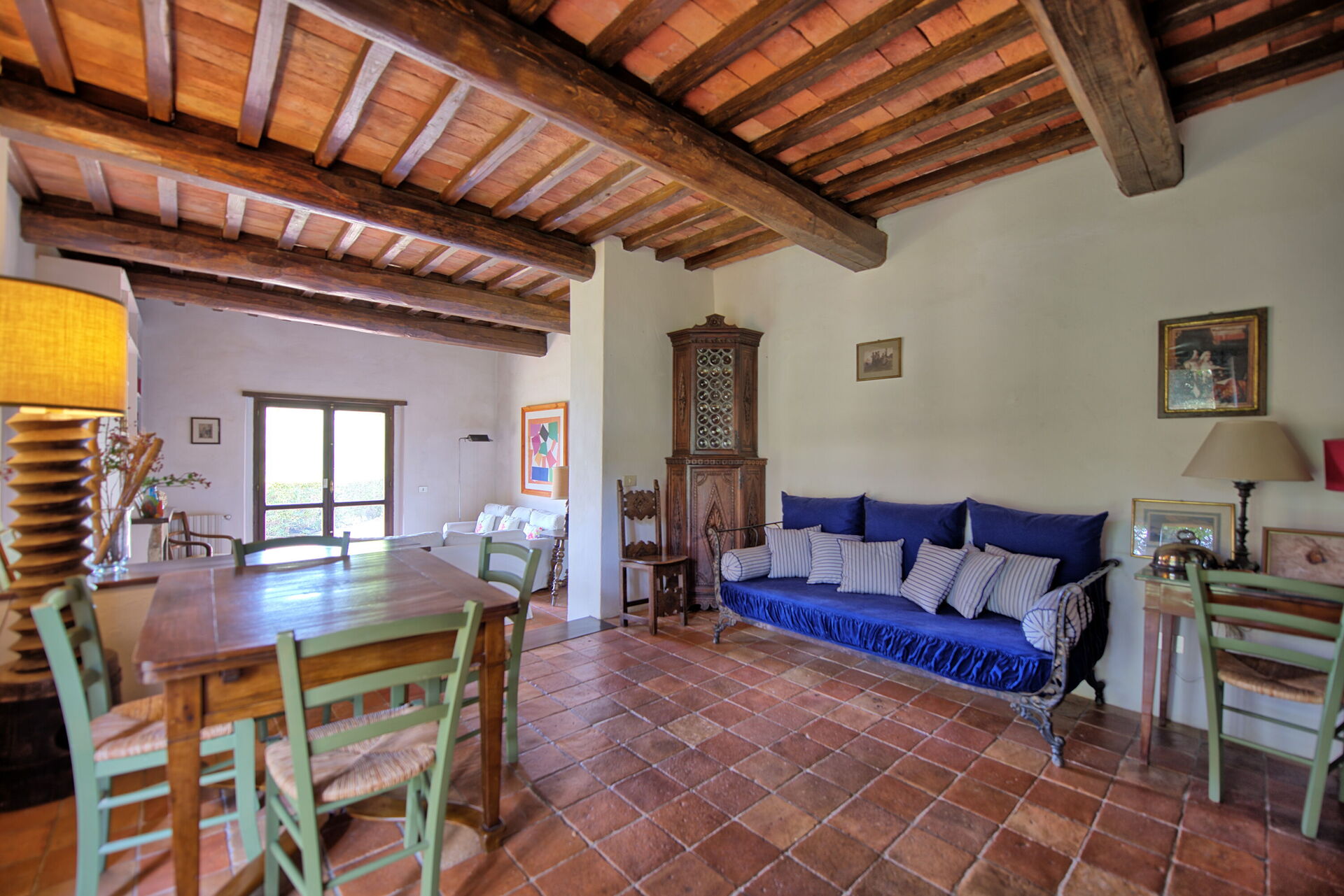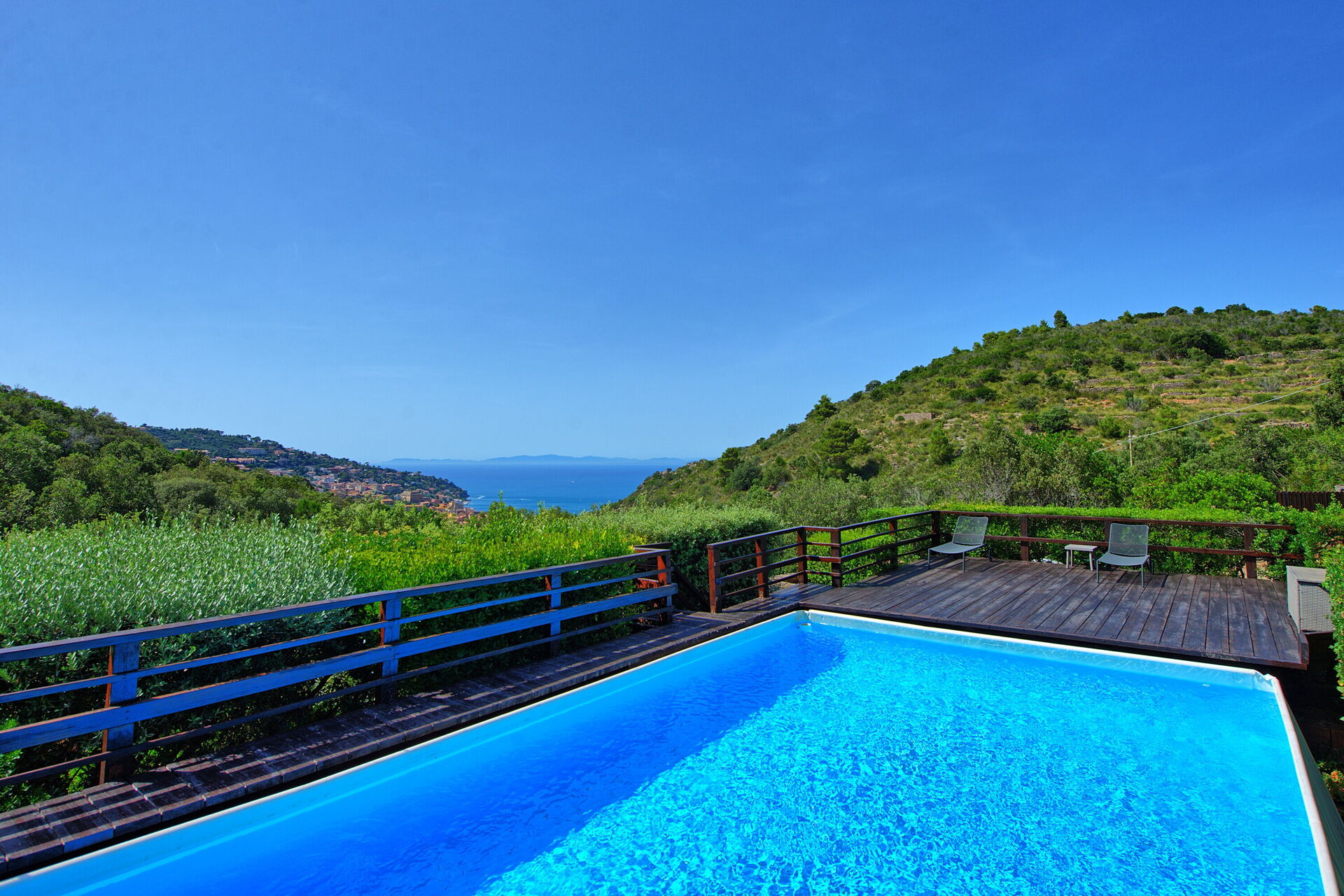 At guests’ disposal: 3 bedrooms and 2 bathrooms, sleeps 6, air conditioning in all bedrooms, large outdoor spaces, barbecue area and outdoor dining area, panoramic views of the countryside and the sea, private pool (above ground; 6 x 3,5 m - depth 1,5 m), washing machine, private parking on the grounds