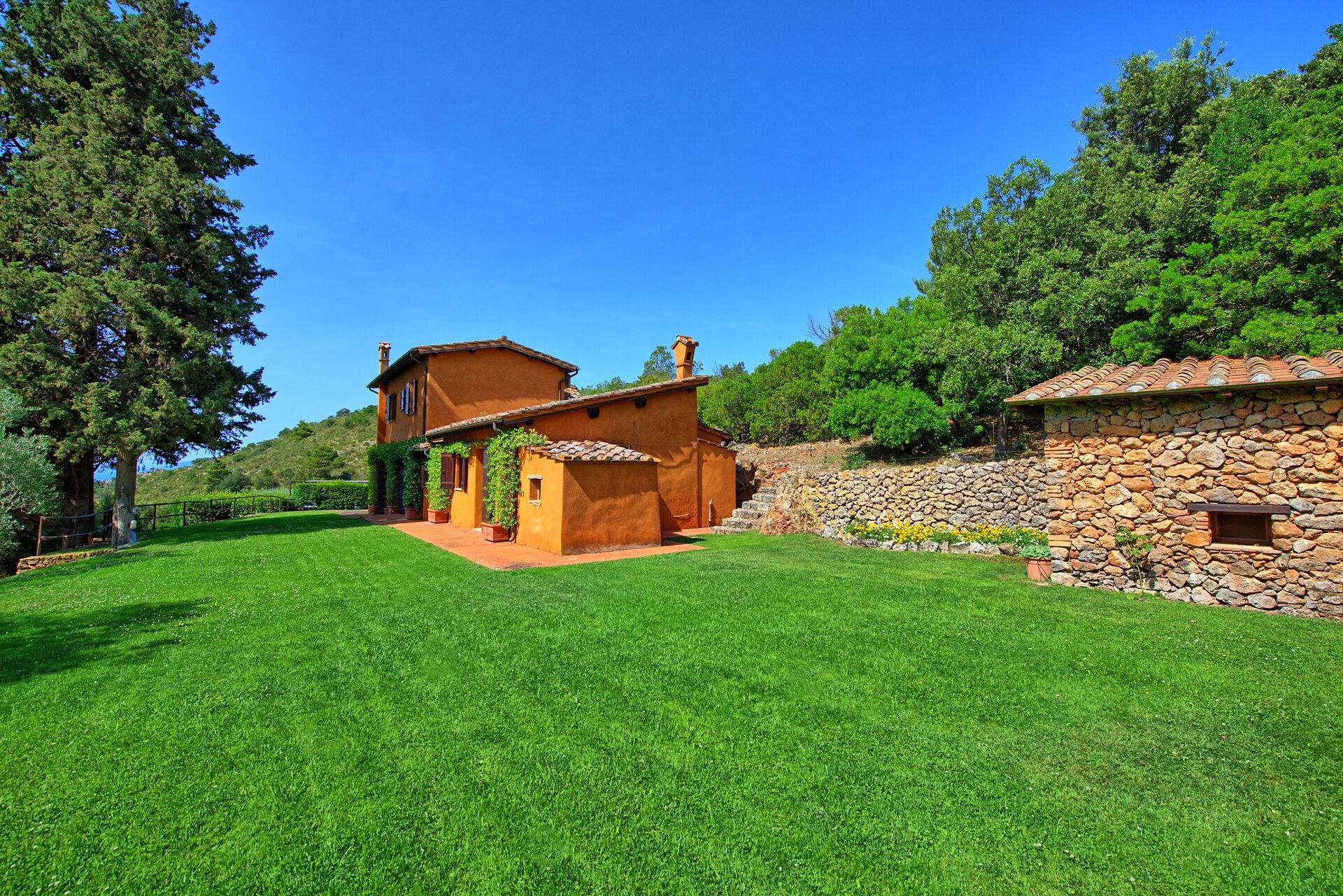 Distances: Porto Santo Stefano (shops of all kinds) 1 km, Feniglia beach (sand) 12 km, Porto Ercole 13 km, Talamone and Uccellina Natural Park 28 km, Capalbio 37 km, Grosseto 45 km, Pitigliano 66 km, Siena 120 km, Rome 170 km, Florence 195 km.