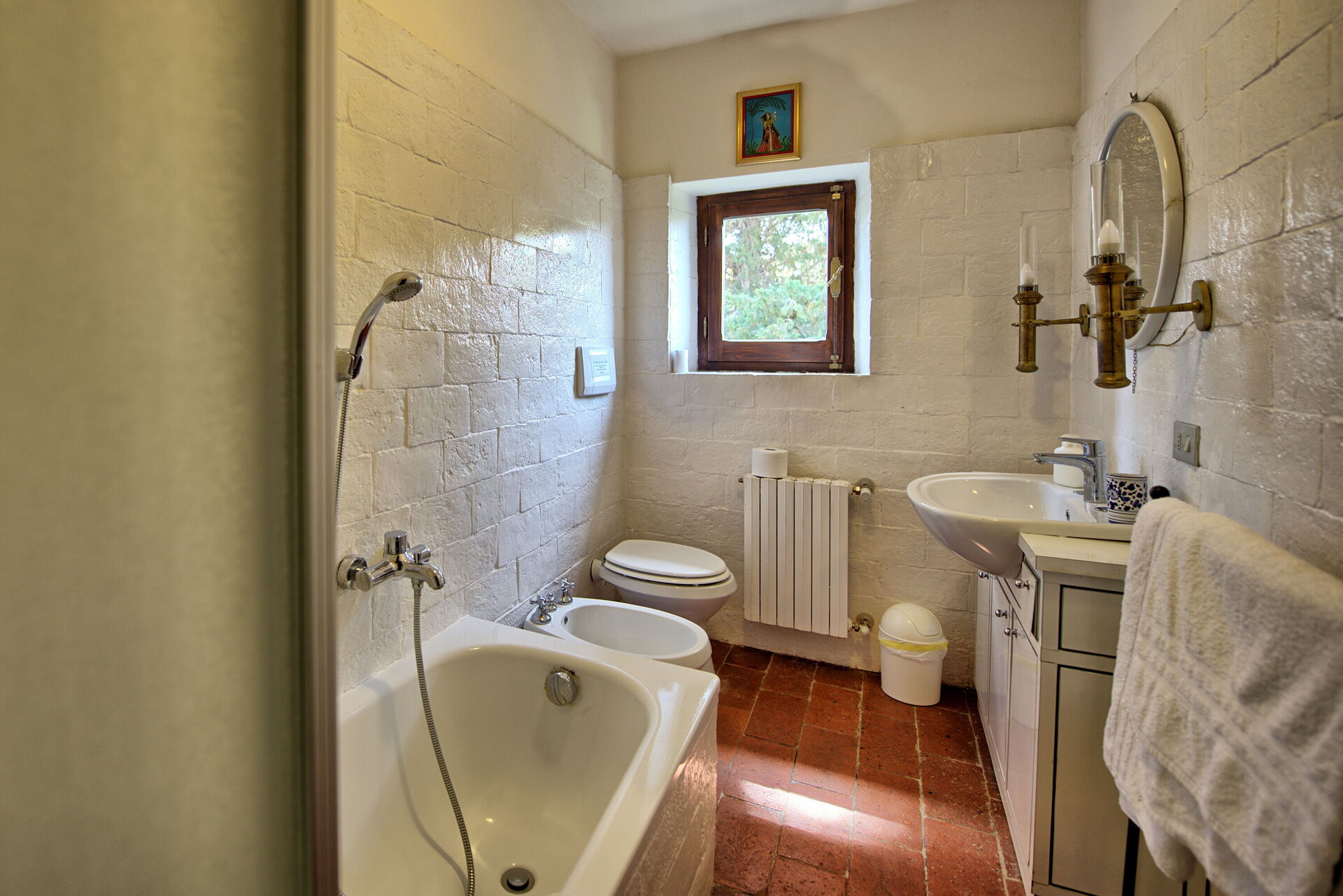 First floor: double bedroom; bedroom with 2 single beds, bathroom with bathtub and shower attachment.