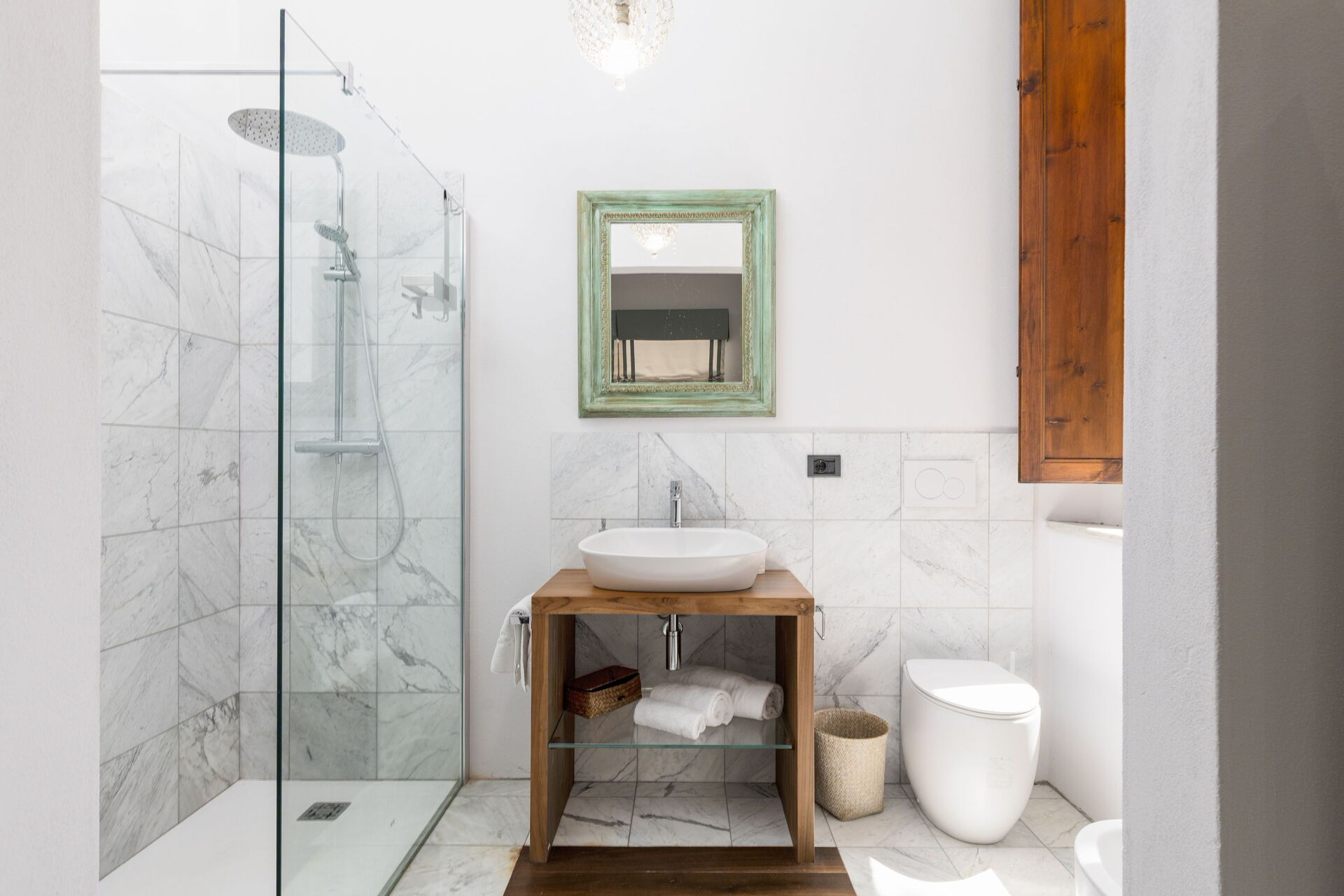 At guests’ disposal: 6 bedrooms, 6 bathrooms, sleeps 10; outdoor dining area equipped with table, chairs, wood burning oven and barbecue; private, saltwater infinity pool with whirlpool zone, chromotherapy waterfall and panoramic views (15 x 10 meters; minimum depth: 0,30 m; maximum depth 1,40 m); sunbathing area; private garden; parking; Wifi internet; air conditioning.