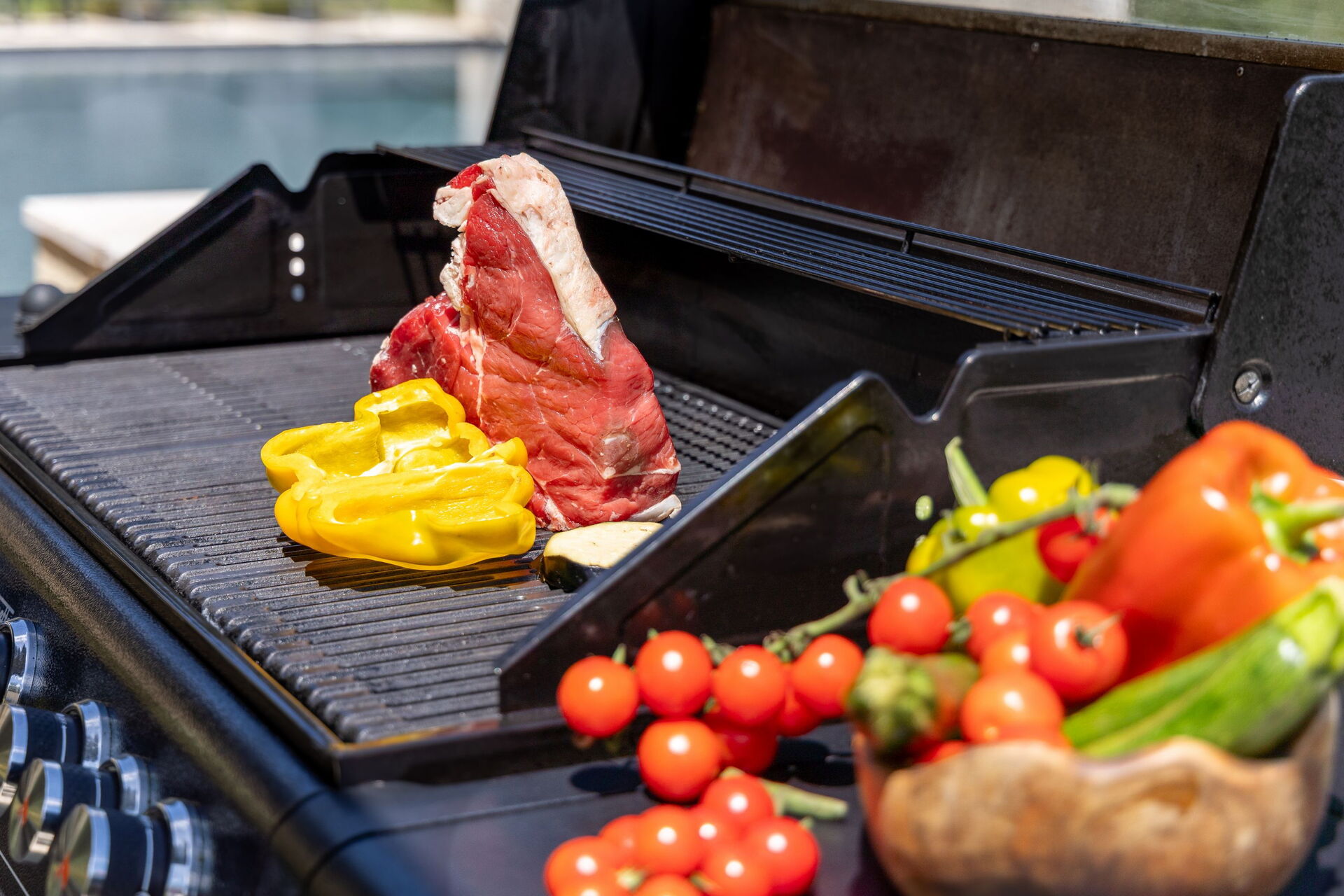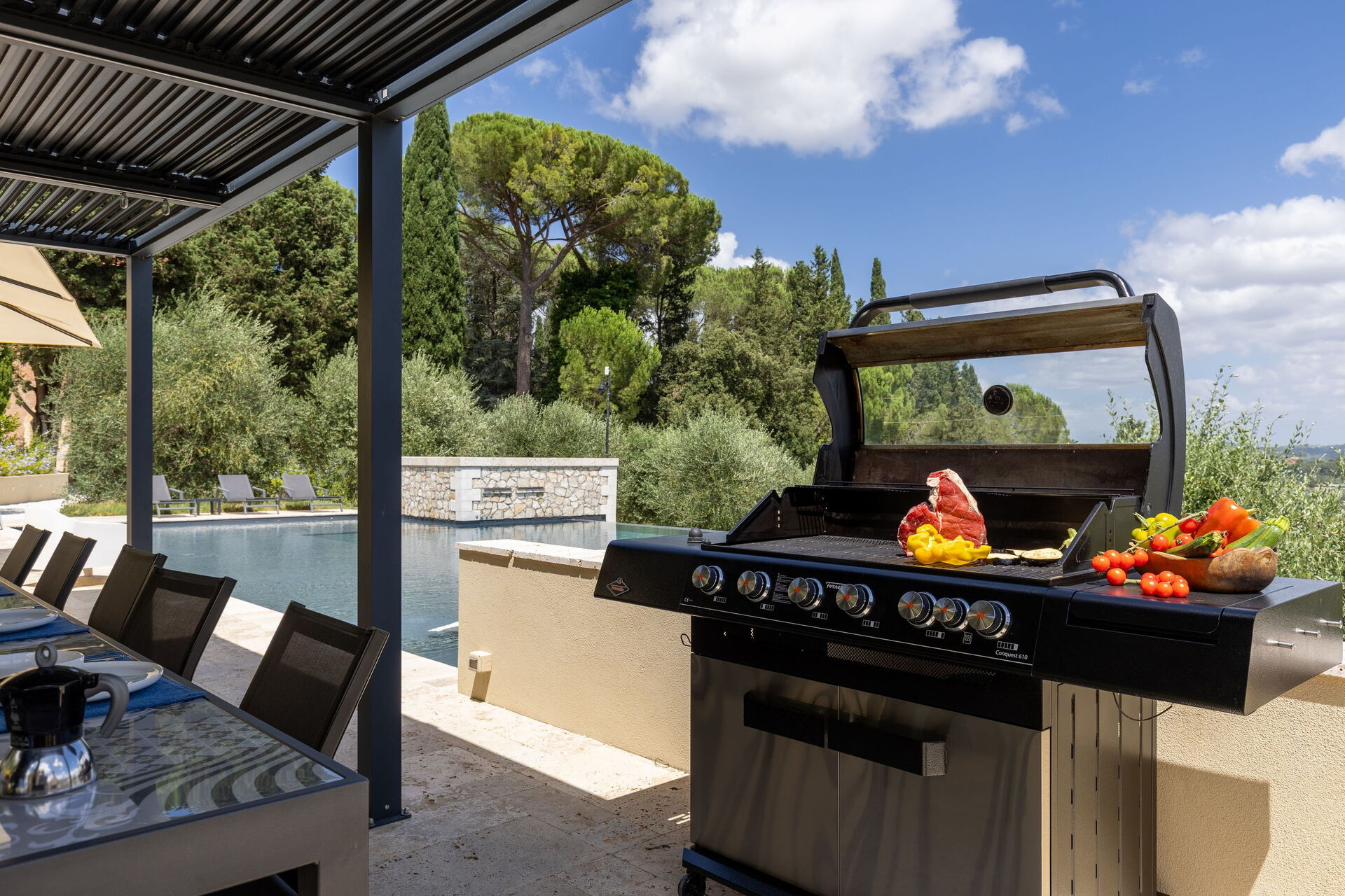 Swimming Pool, Garden Furniture, Al Fresco Dining, Dining Table, Barbecue