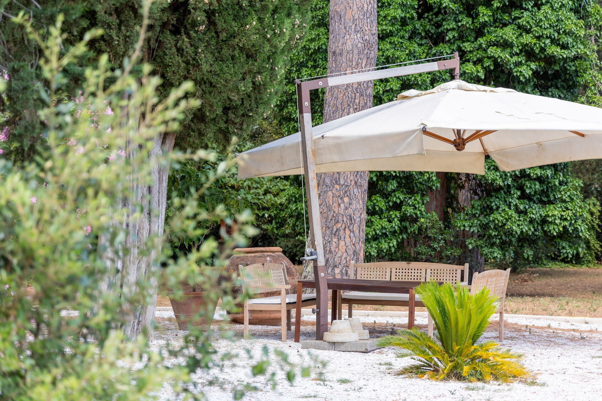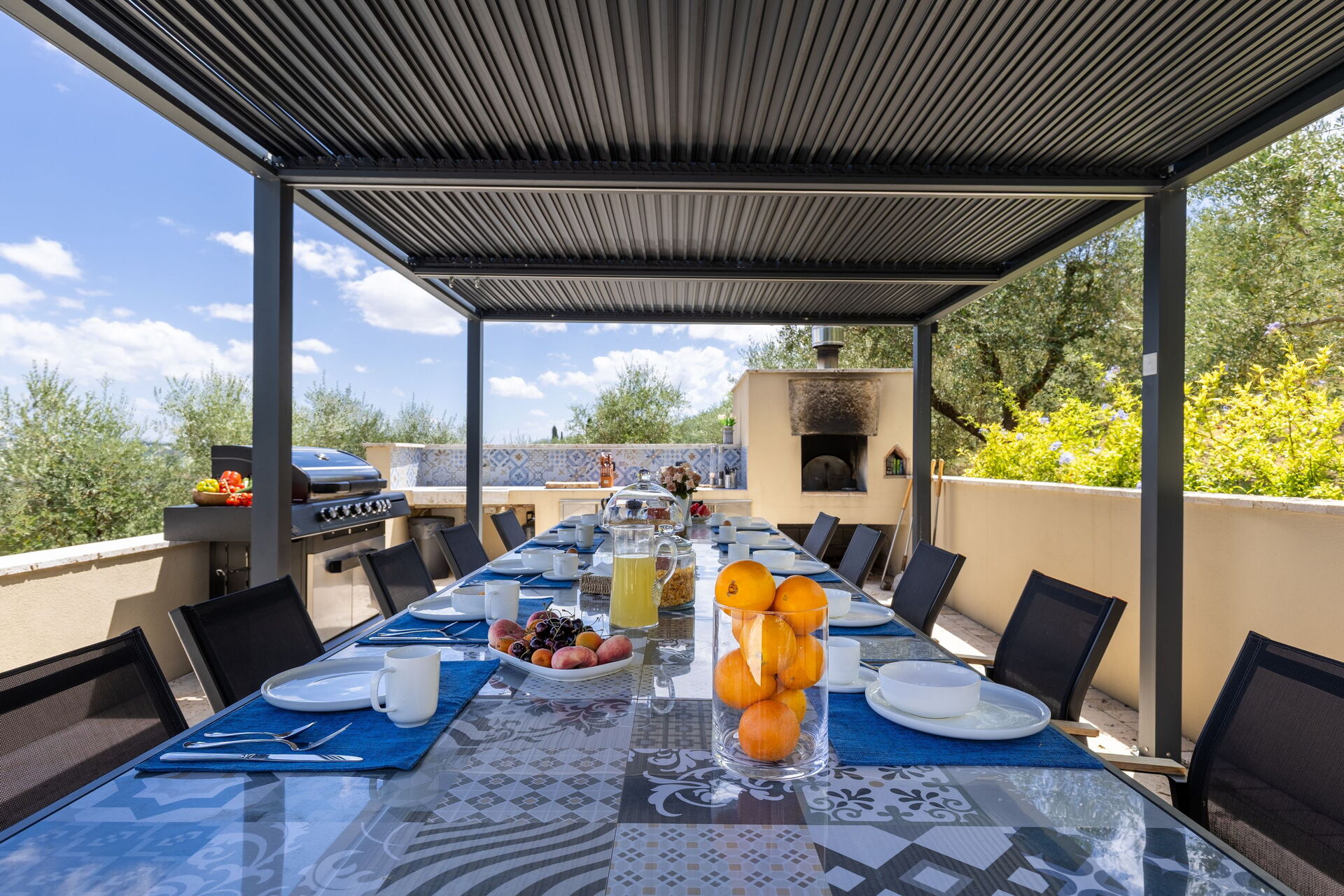On the grounds there is a large, well tended garden; a splendid infinity pool with a whirlpool corner and an aromatherapy waterfall; and a barbecue area furnished for outdoor dining.